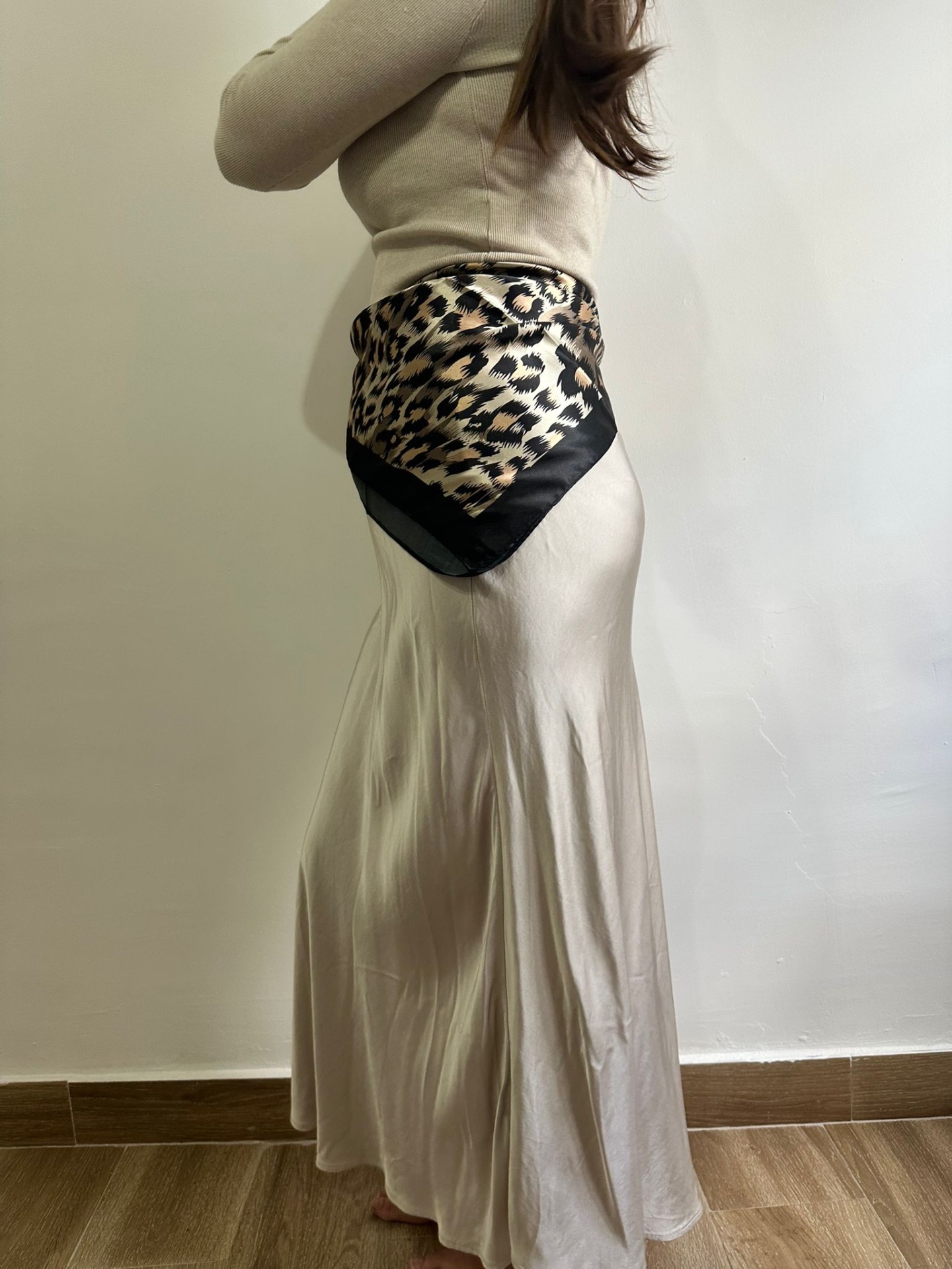 Falda satén color champán