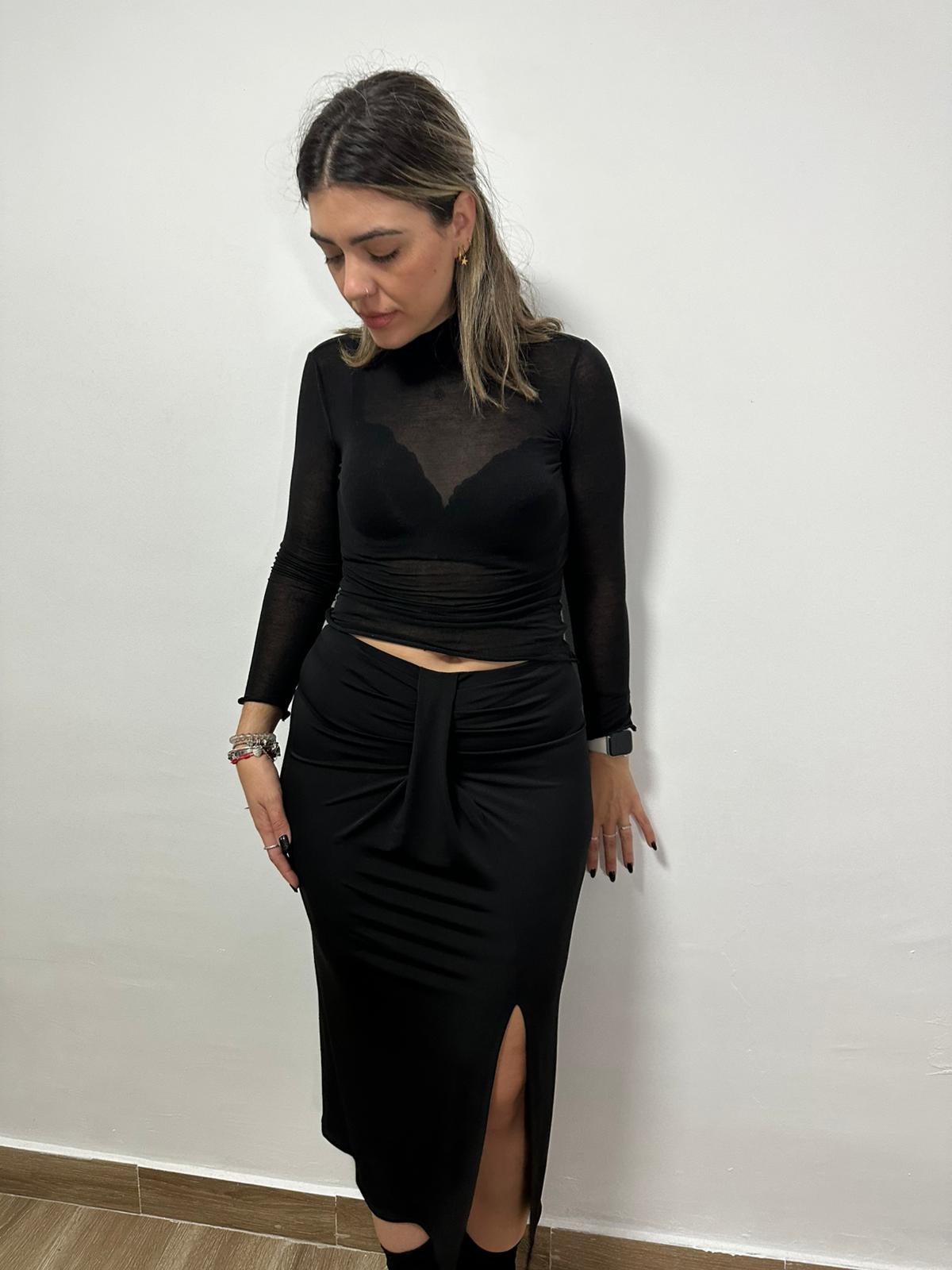 Falda satén negra