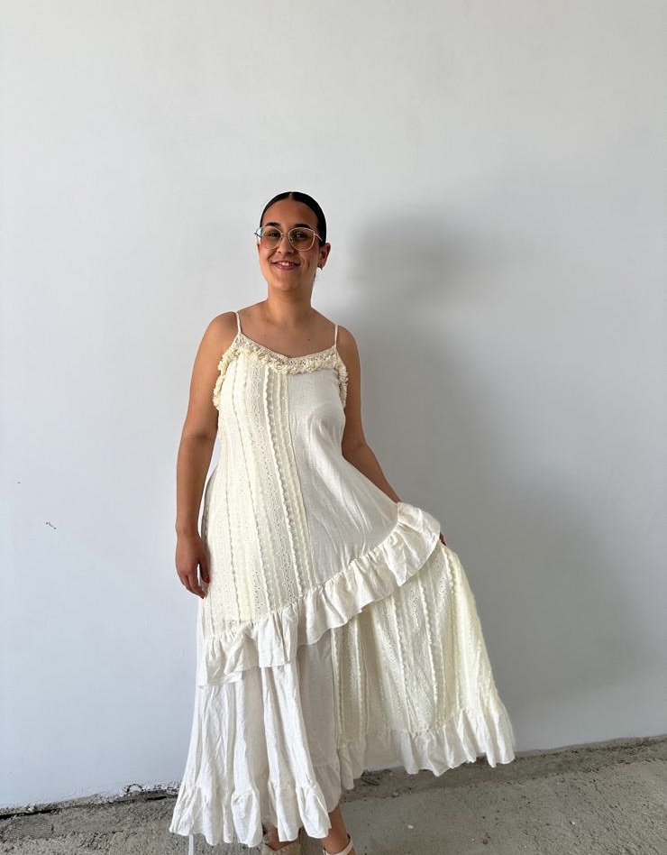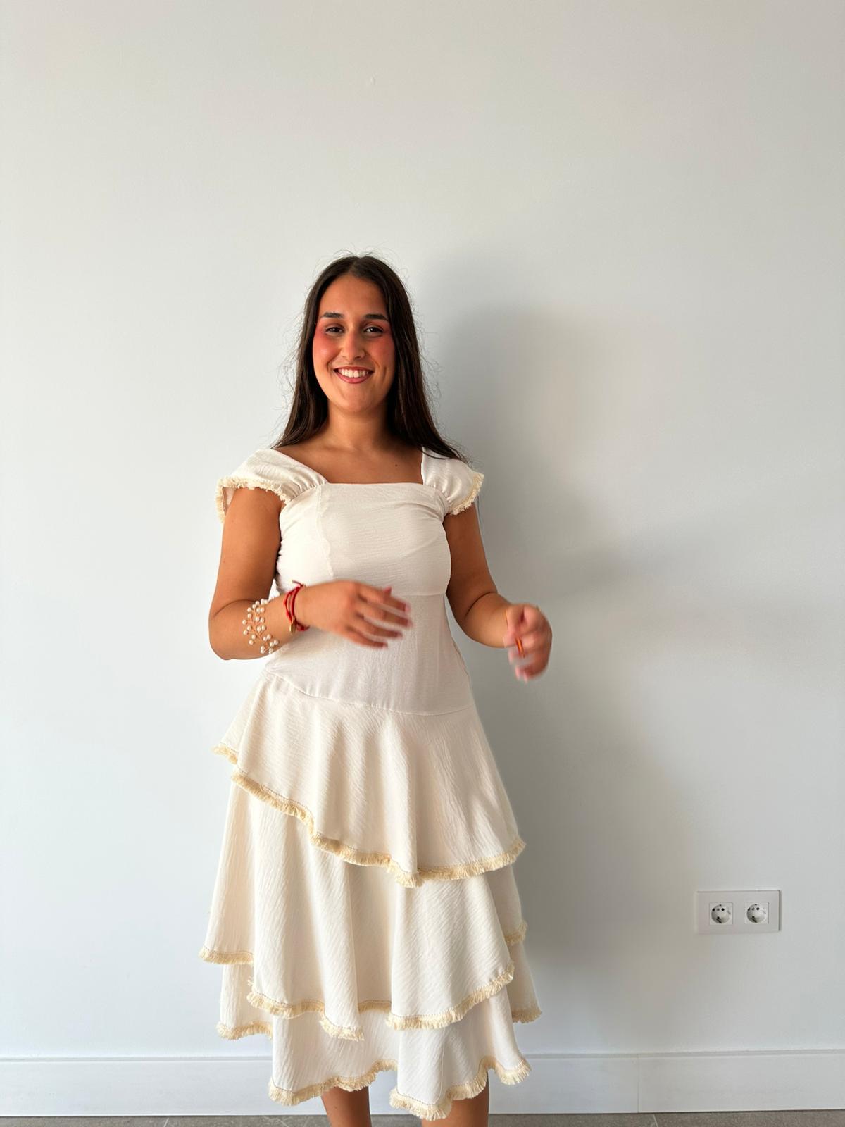 Vestido volantes beige