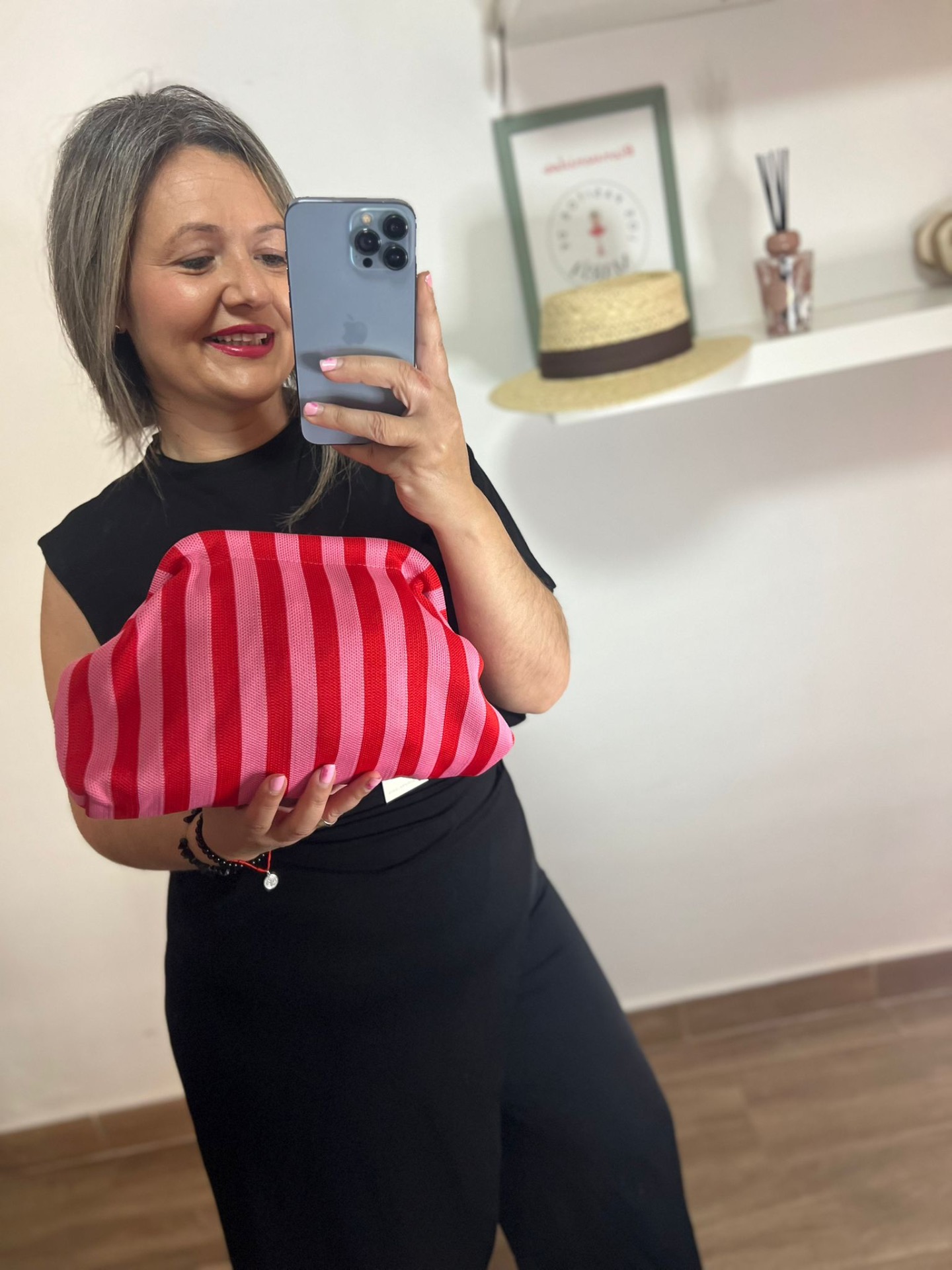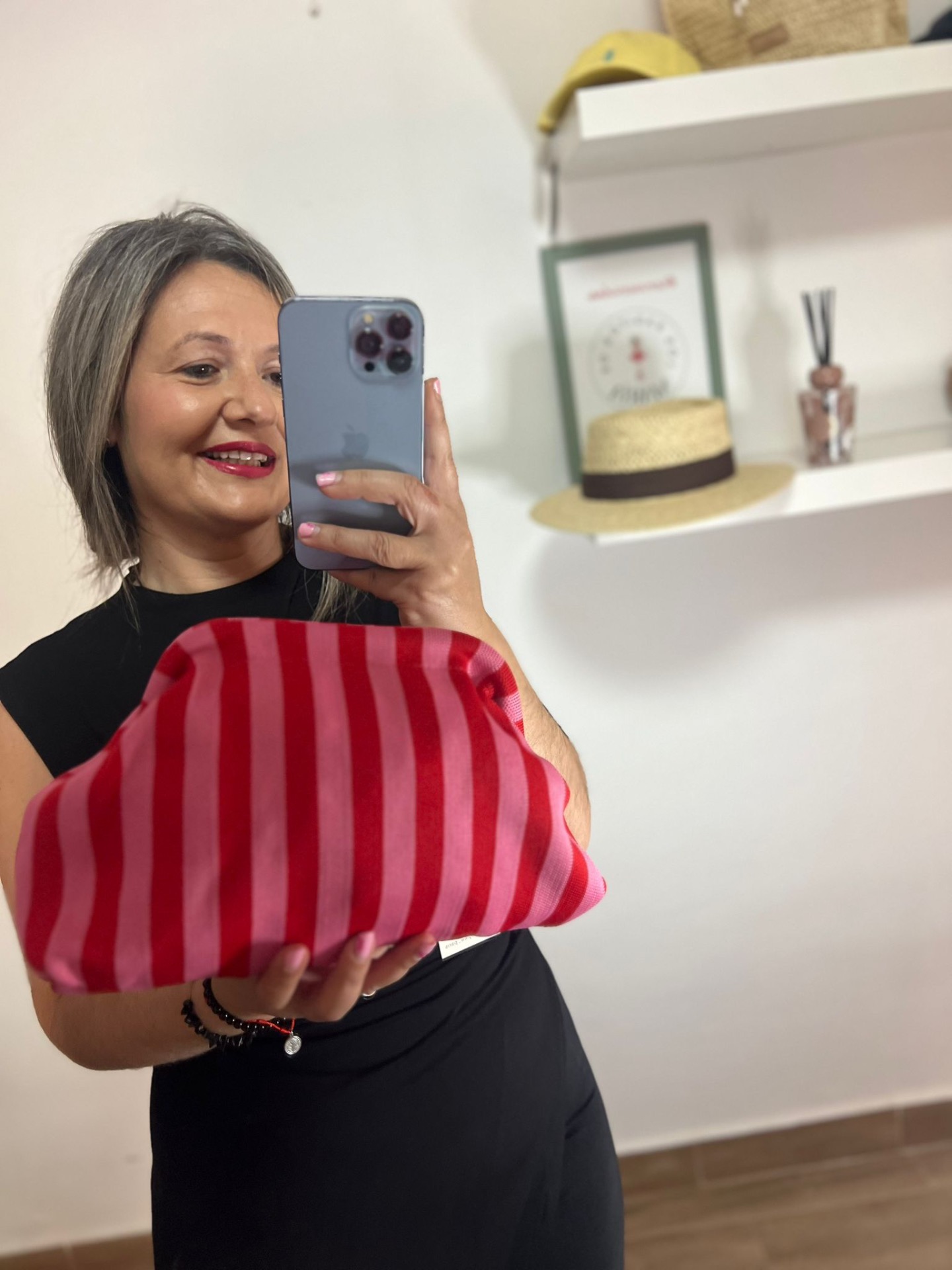 Bolso de mano rayas rosa y rojo