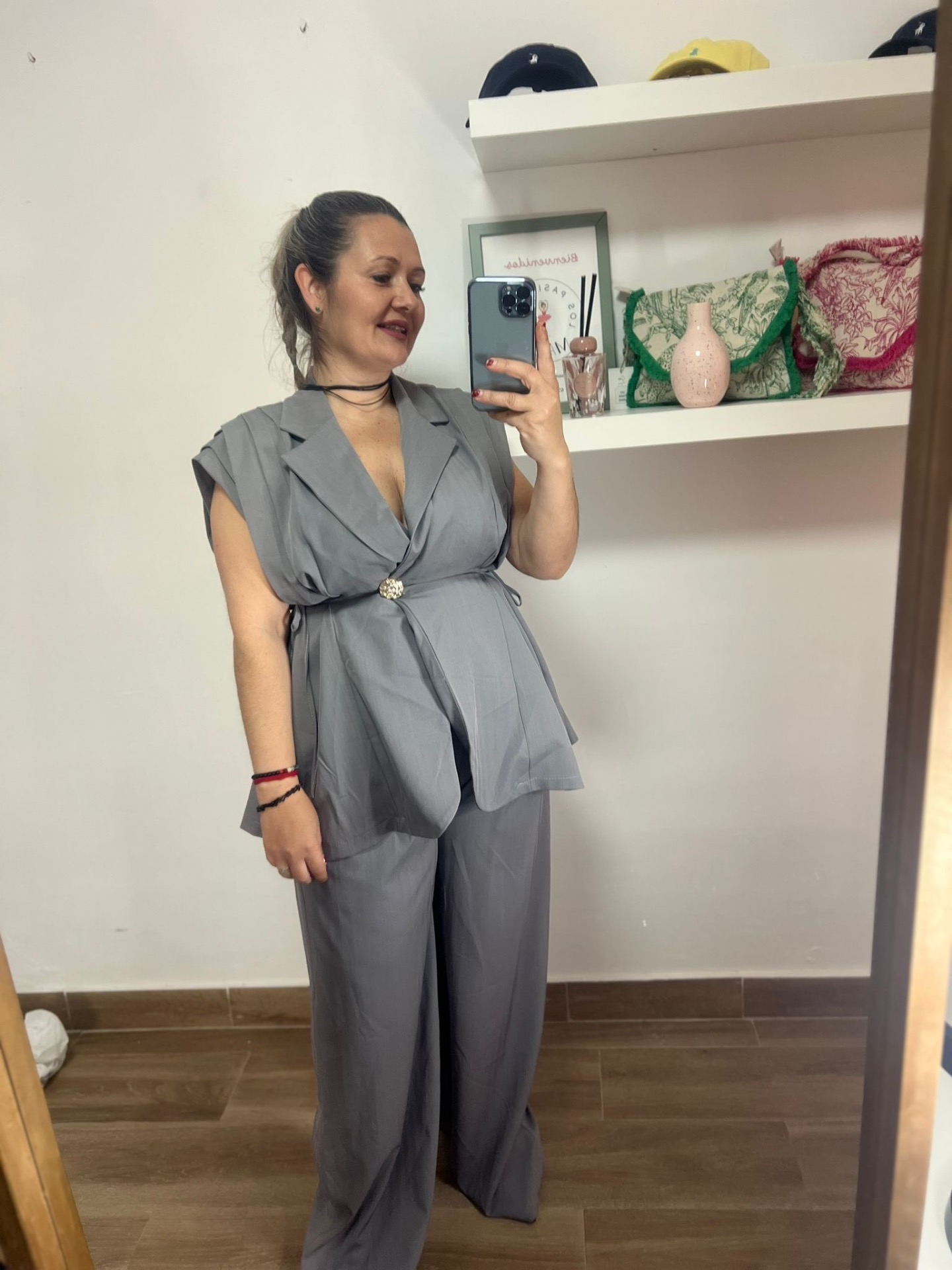Pantalón gris pata ancha