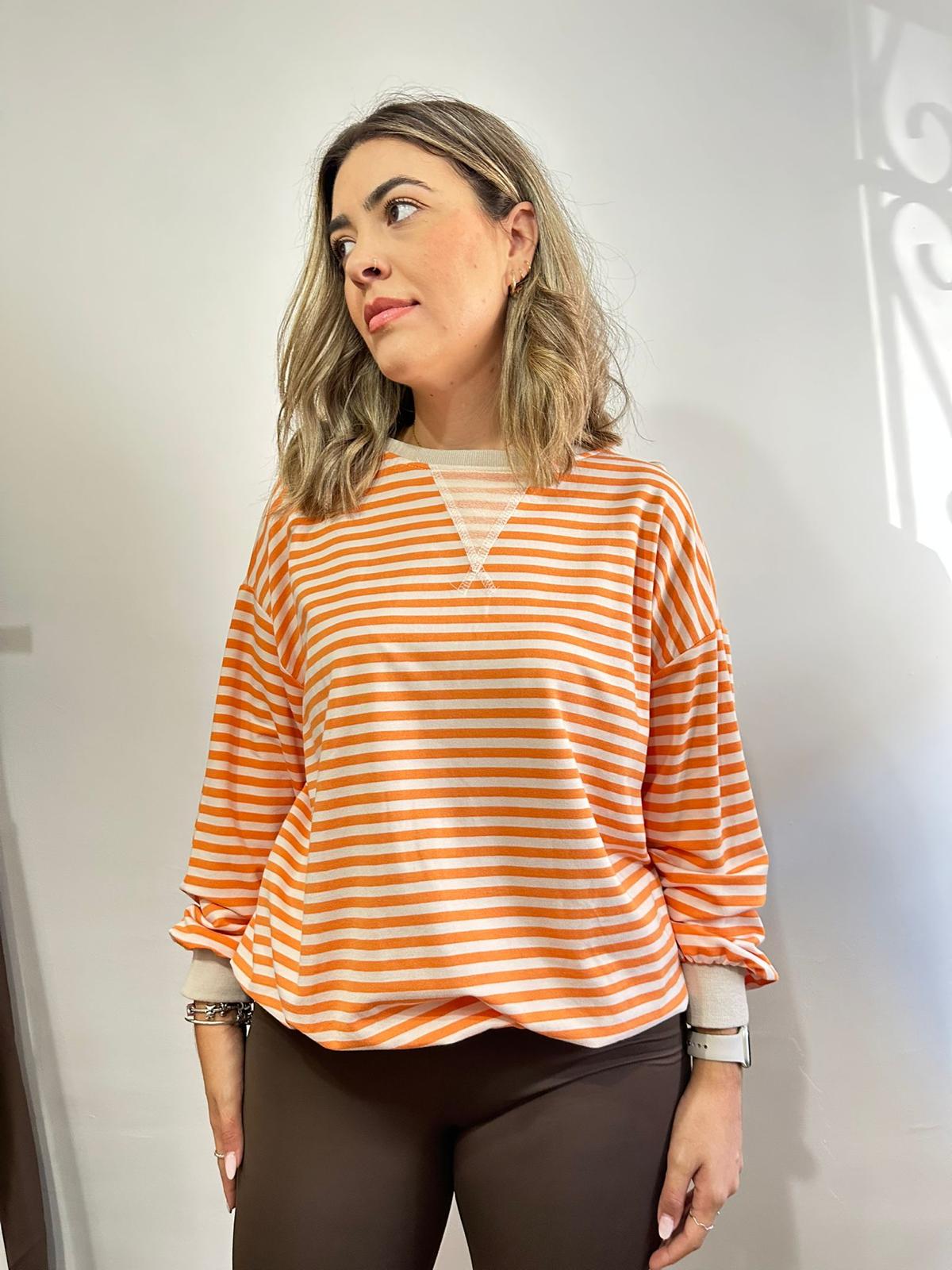 Sudadera rayas naranja y crema